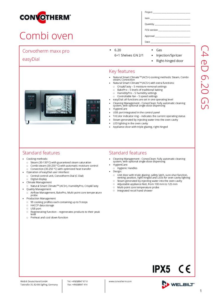 Convotherm maxx pro easyDial 6 20 Gas Spritzer Specification
