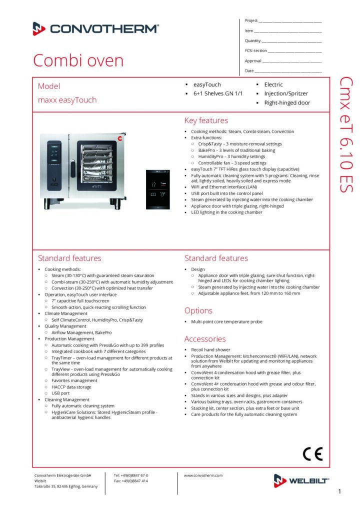 Read MoreConvotherm maxx Cmx eT 6 10 Electric Spritzer Specification