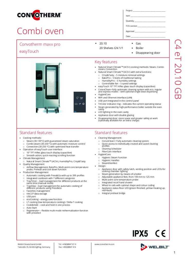 Read MoreConvotherm maxx pro easyTouch 20 10 Gas Boiler disappearing door Specification