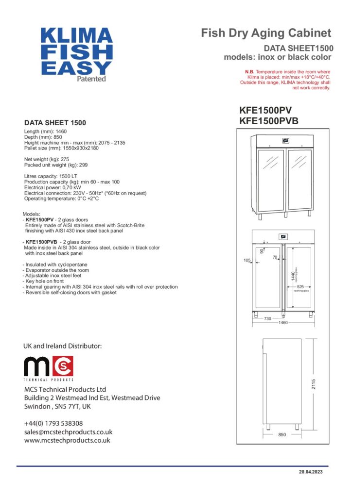 Read MoreKlima KFE1500 Spec