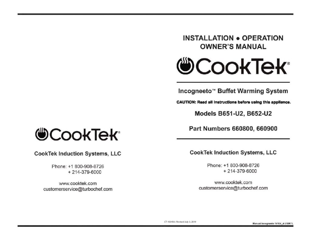 Read MoreCookTek B652 U2 Incogneeto Manual