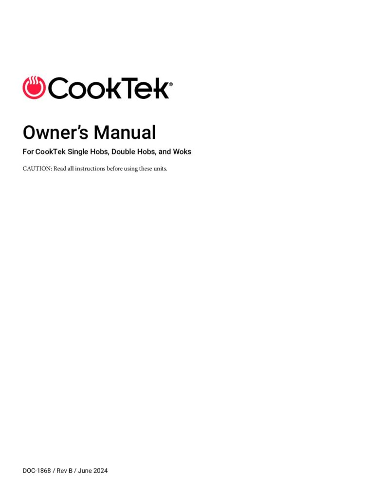 Read MoreCookTek 4 and 6 Hob manual