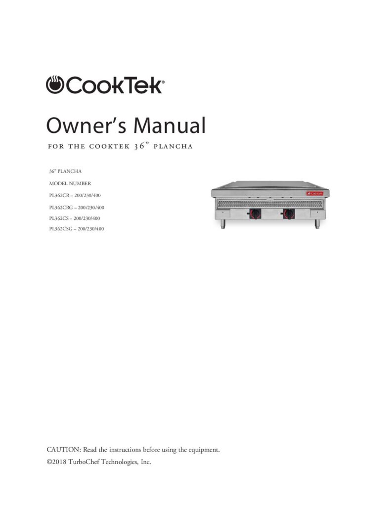 Read MoreCookTek Plancha 36ΓÇ¥ Manual