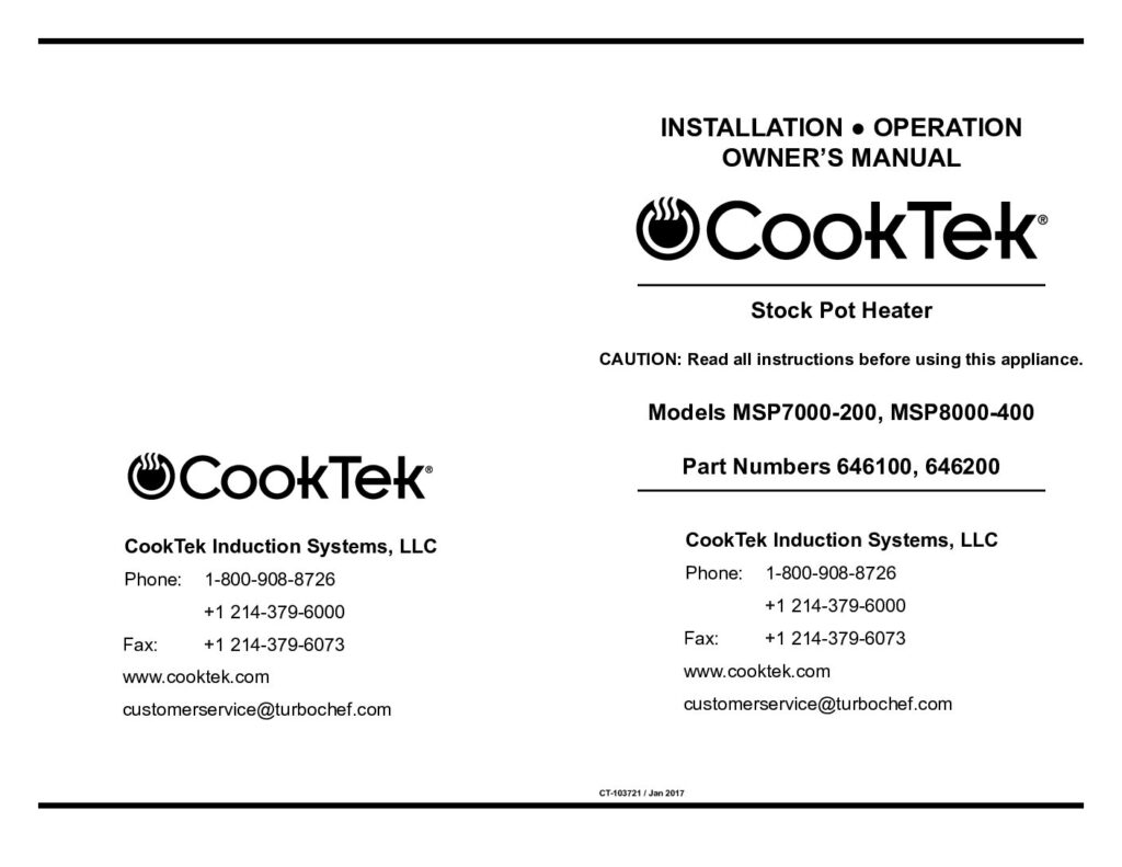 CookTek Stockpot Manual